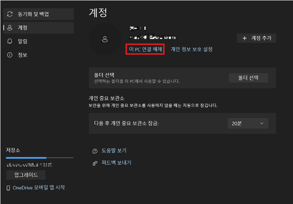 연결 해제를 하면 One Drive 로그인부터 폴더 위치 설정까지 모두 처음 설정하는 것처럼 그대로 할 수 있다.