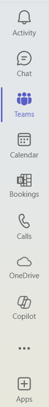 Teams를 들어가면 왼쪽 탭에서 기본적으로 Chat가 선택된 상태로 있는데, 이 상태에서 Chat이 아닌 Teams가 선택되도록 Teams를 클릭한다.